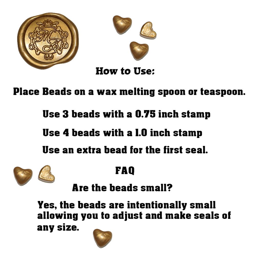 This listing is for Antique Gold Sealing Wax Beads. 250 cute heart shaped beads per pack. Each pack makes around 50 1.0 inch wax seals. These wax beads are great for making wax seals at home. They are a fun project that everyone in the family can enjoy.