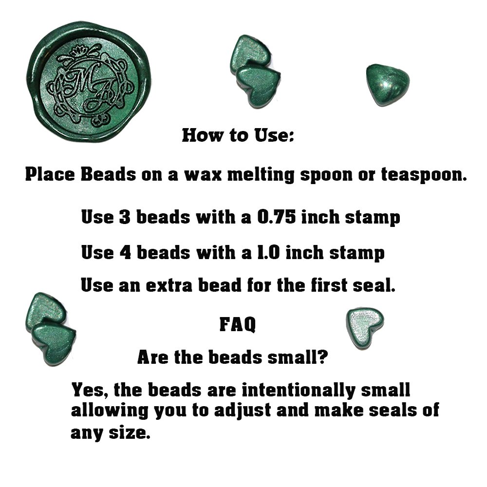 This listing is for Emerald Green Sealing Wax Beads. 250 cute heart shaped beads per pack. Each pack makes around 50 1.0 inch wax seals. These wax beads are great for making wax seals at home. They are a fun project that everyone in the family can enjoy.